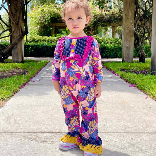 Fall Plum Floral Baby Girls Dress Up Ruffle Long Sleeve Romper