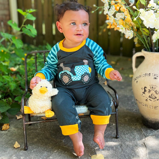 Baby Boys Blue Tractor Truck Fall Winter Cotton Romper