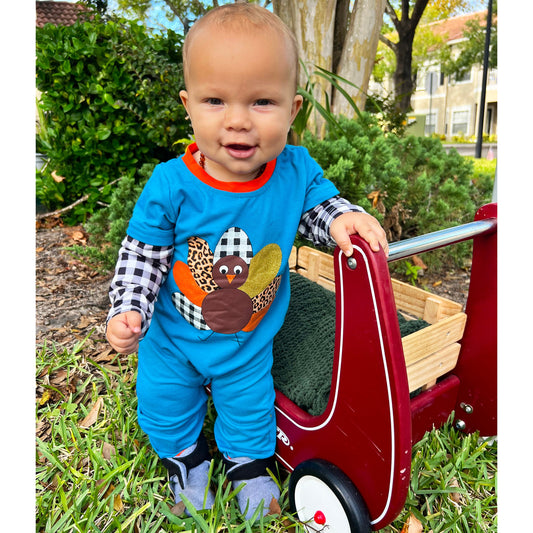 Boys Long Sleeve Thanksgiving Turkey Baby Toddler Romper