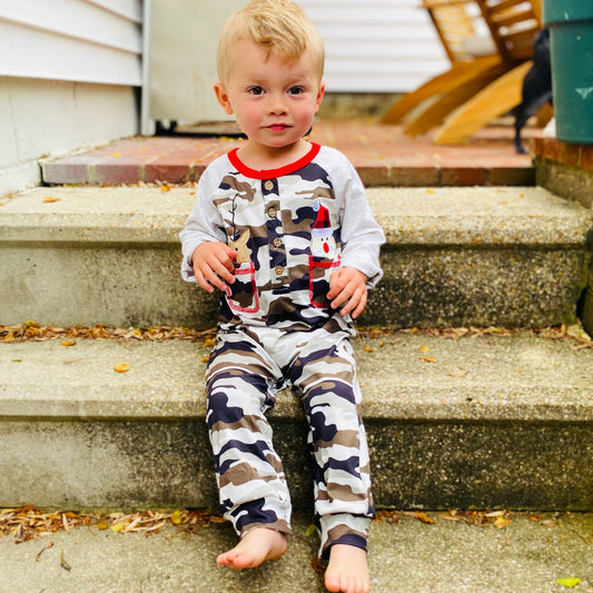 Baby Boys Holiday Reindeer Santa Christmas Camouflage Romper- AL Limited