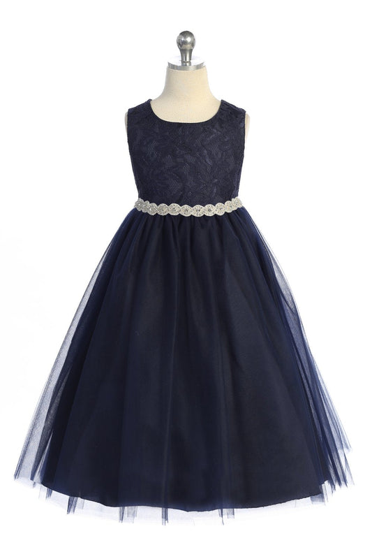 524-A Long Lace Illusion Dress w/Rhinestone Trim