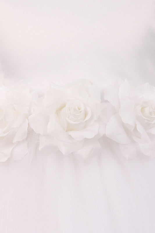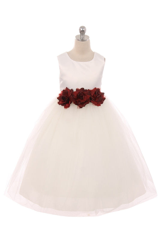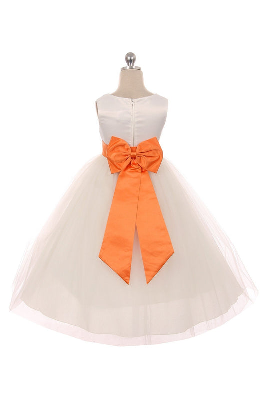 411 Satin Sash Bow Girl Dress (Ivory Dress)
