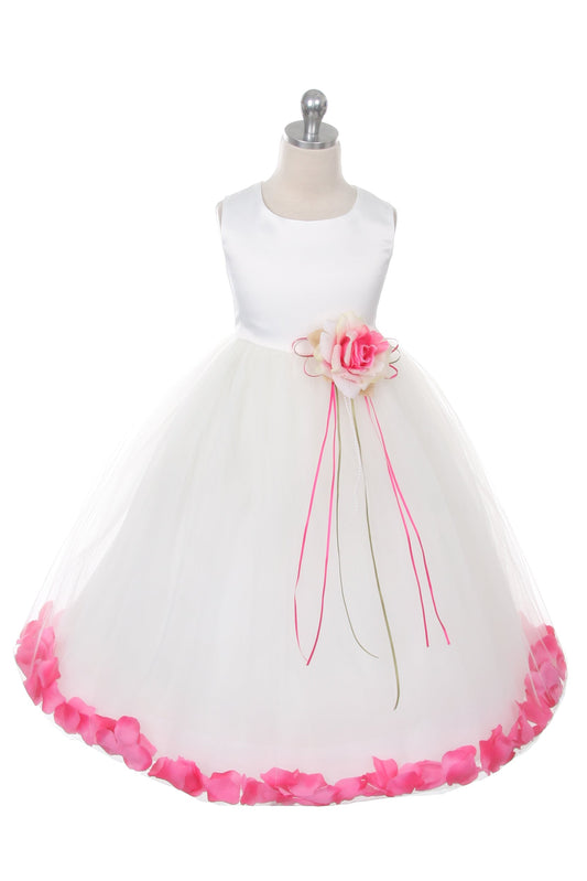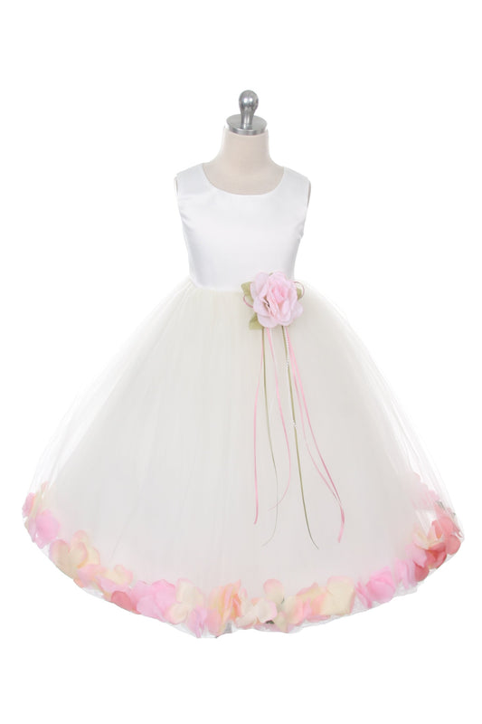 160B Blush Satin Flower Petal Girl Dress with Plus Sizing