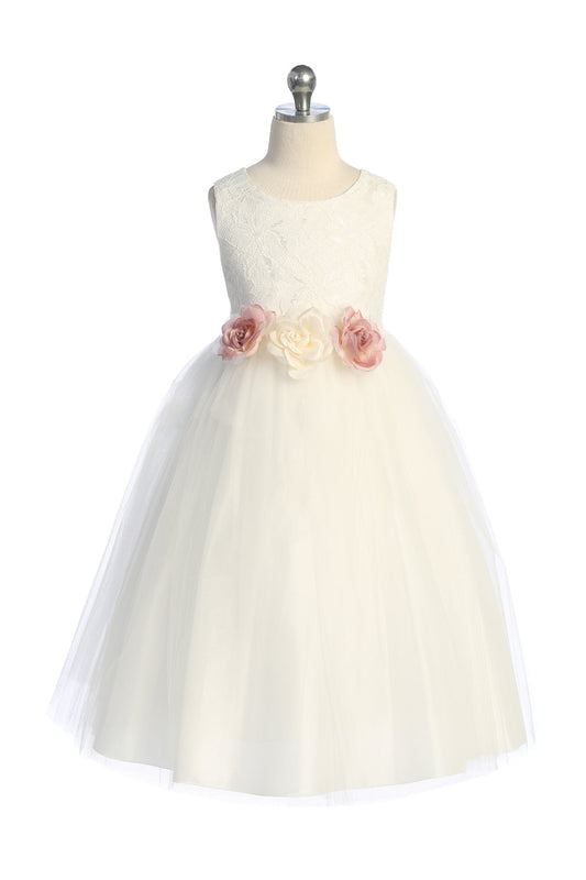 428 Poly Silk Tulle Girls Dress w/ Plus Sizing (Ivory Dress)