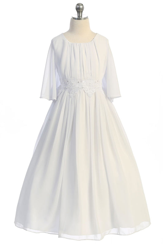 526-C- Lace V Back Bow Plus Size Dress w/ Thick Pearl Trim