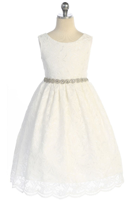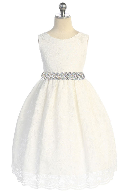 526-E- Lace V Back Bow Plus Size Dress w/ Thick Rhinestone Trim