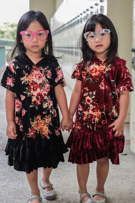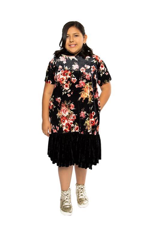 432F+ Floral Hoodie Ruffle Plus Size Girl Dress