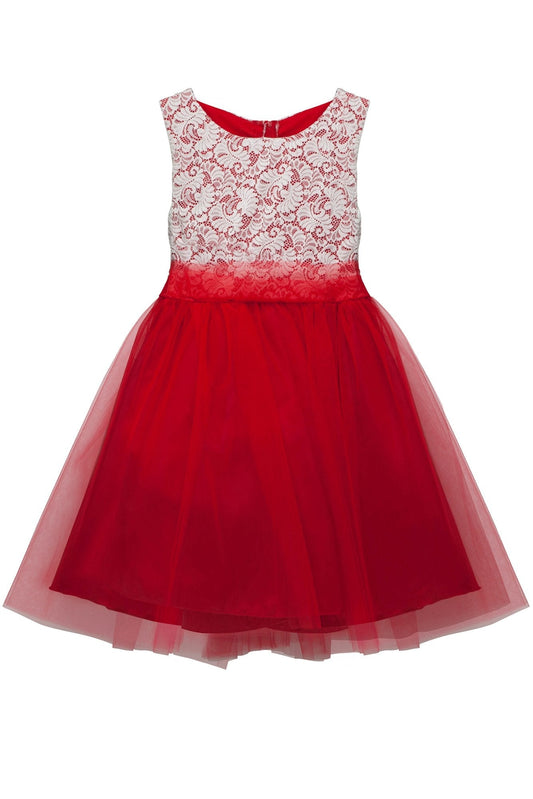 526-B- Lace V Back Bow Plus Size Dress w/ Mesh Pearl Trim