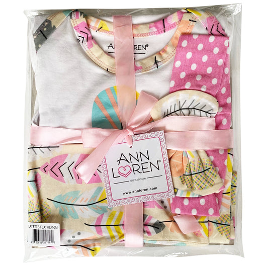 AnnLoren Baby Girls Layette Feather Onesie Pants Headband 3pc Gift Set Clothing 18-24M