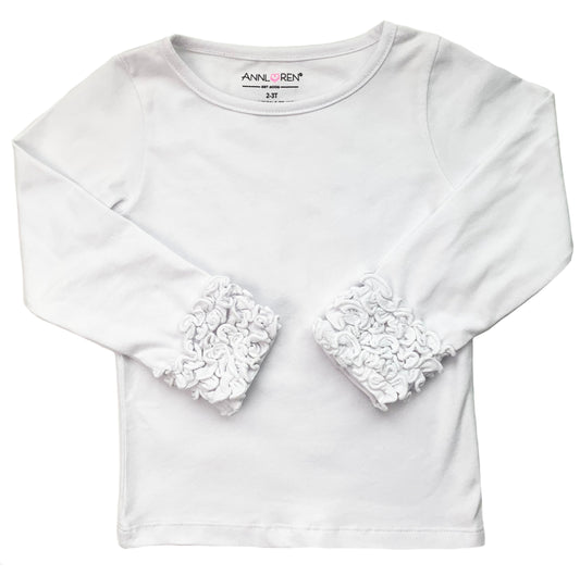 AnnLoren Baby Big Girls Boutique Long Sleeve White Ruffle Layering T-shirt