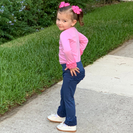 AnnLoren Baby Toddler Big Girls Boutique Navy Ruffle Butt Leggings