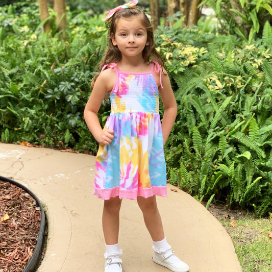AnnLoren Big Little Girls Pastel Tie Dye Smocked Summer Swing Dress
