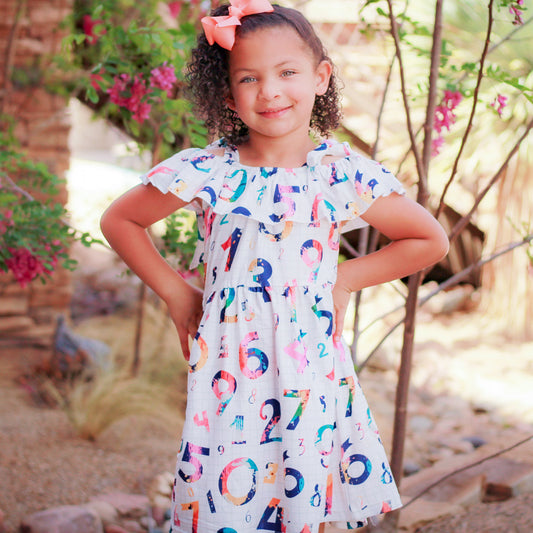 Little & Big Girls Colorful Numbers Ruffle Dress Back To School