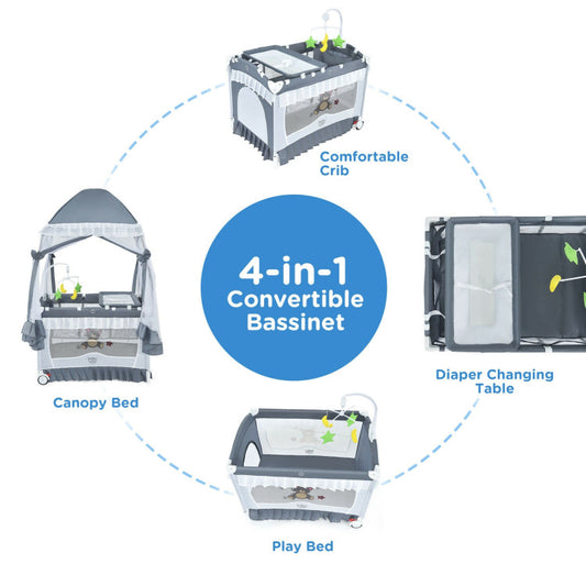 4-in-1 Portable Baby Playard with Carry Bag and Mosquito Net