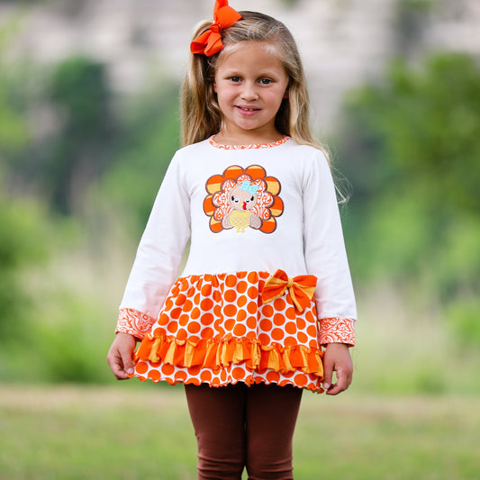 AnnLoren Big Little Girls Autumn Turkey Tunic & Leggings Holiday Thanksgiving Clothes