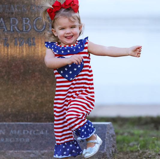 AnnLoren Fourth of July I Heart America Flag Baby Girls' Romper Holiday Onesie