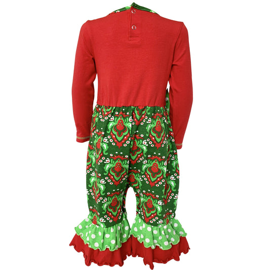 Red Green Damask Christmas Rudolph Reindeer Romper 6M-24M