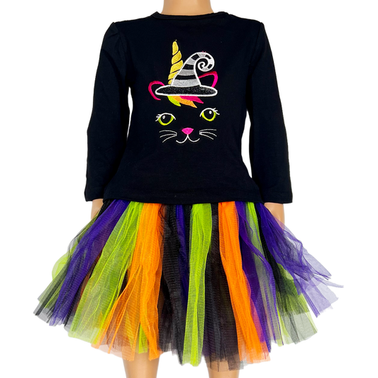 Big Girls Halloween Black Cat Shirt and Tulle Skirt