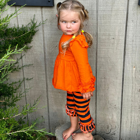 Girls Black & Orange Blank Orange Ruffle Tunic Stripe Pants Halloween