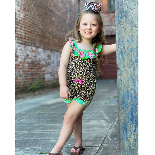 AnnLoren Girls Leopard Floral Summer Shorts Jumpsuit