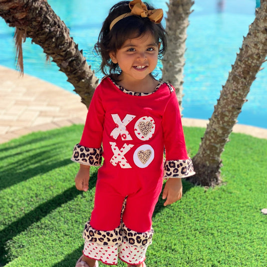 AnnLoren Baby Girls Red Long Sleeve Romper XOXO Valentine's Day Jumpsuit