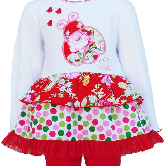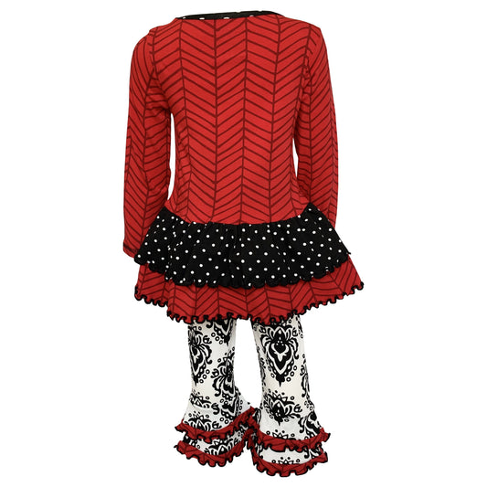 AL Limited Girls Valentine's Day LOVE Red Long Sleeve Tunic Leggings & Scarf Clothing Set