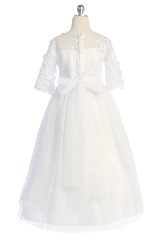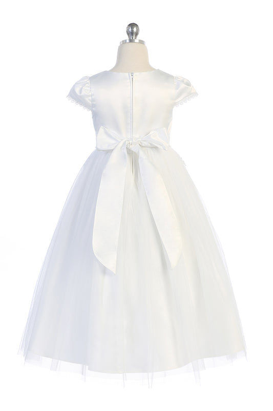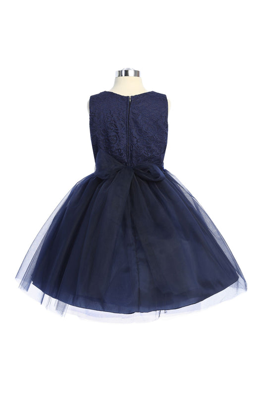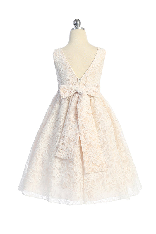 Lace V Back Bow Dress w/ Rhinestone Trim