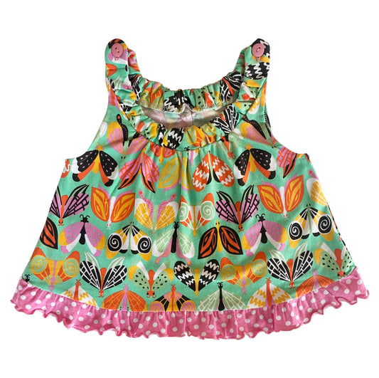 AnnLoren Baby Girls Swing Tank Top Butterfly Polka Dot with Bow And Ruffle Trim Sizes 3M - 24M