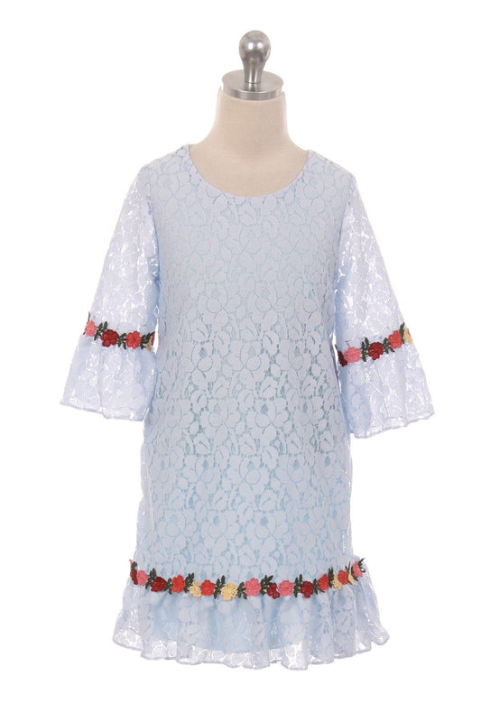 416 Lace Shift Dress W/ Ruffle Sleeves