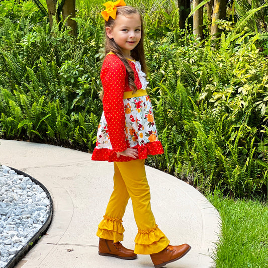 Boutique Girls Boutique Fall Floral Eyelet Tunic & Mustard Ruffle Pants Set