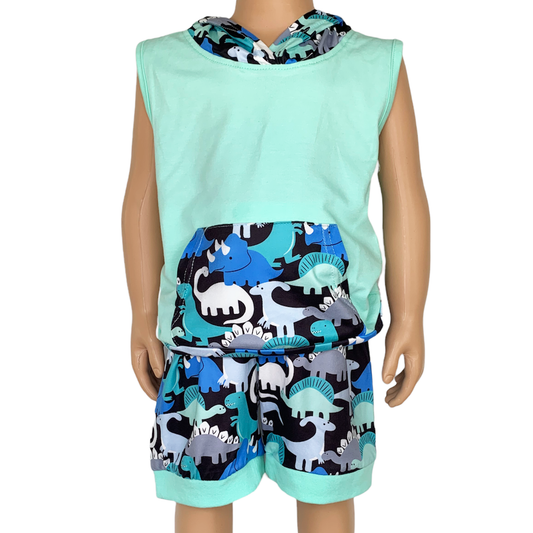AL Limited Boys Dinosaur Hoodie Kangaroo Pocket Short Set Outfit