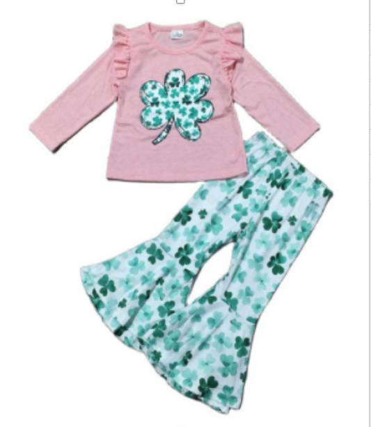 AL Limited St Patricks Day Clover Holiday Top Pants Outfit Set