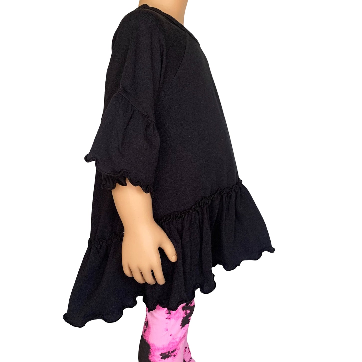 AnnLoren Little & Big Girls 3/4 Angel Sleeve Black Cotton Knit Ruffle Shirt