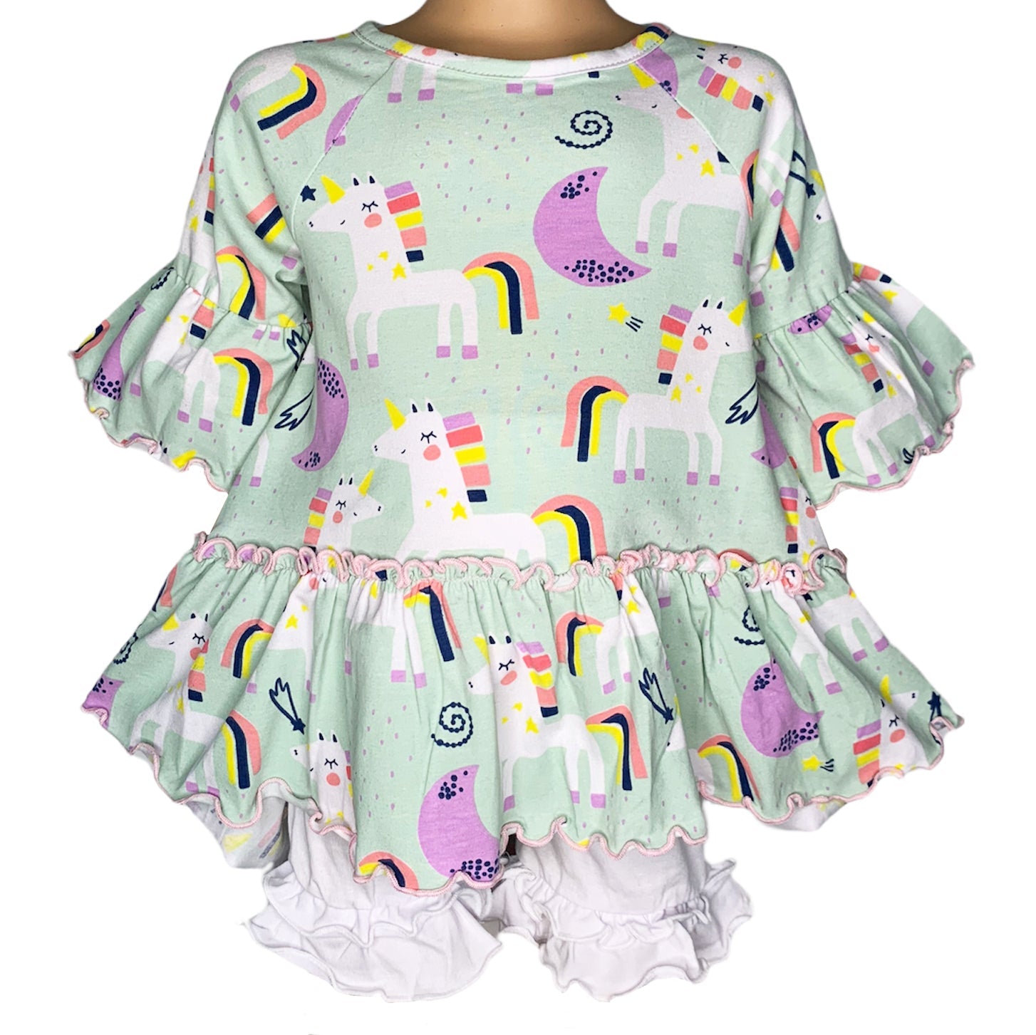AnnLoren Little & Big Girls 3/4 Angel Sleeve Unicorn Cotton Knit Ruffle Shirt